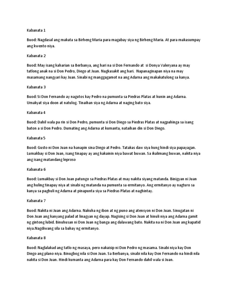 Paglakbay ni Don Juan papunta ng Piedras Platas na salubong niya isang matandang leproso. Feb 16 2013 Kabanata 11. Feb 16 2013 Nakita ng Ermitanyo ang kalinisan ng puso ni Don Juan at sinabi niya ang dapat gawin upang mahuli ang Ibong Adarna.