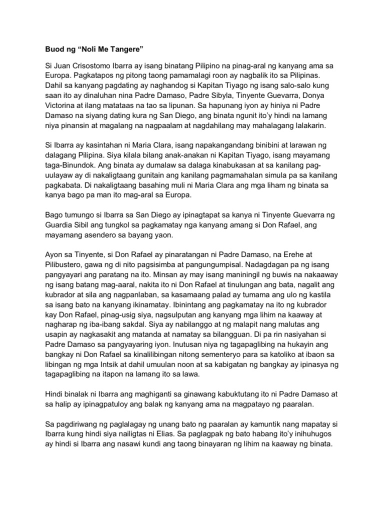 Noli Me Tangere Buod Ng Bawat Kabanata 1 64 With Talasalitaan