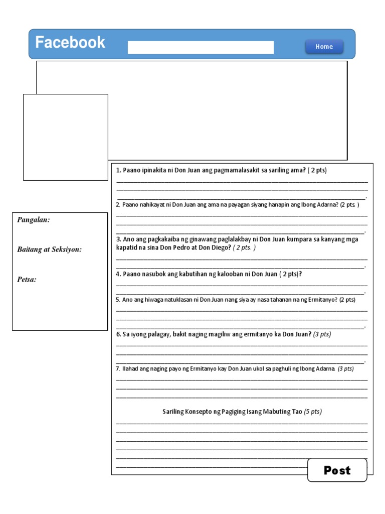 Naisip ni leonora patay ba si don juan. Bayan niyang sinilangan yaong palasyong nilikhan magulang na mapagmahal kapwa batat kaibigan. New questions in Filipino.